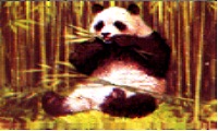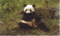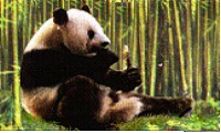 貓熊食量很大。牠們在竹林中穿行時,邊走邊吃邊排泄。牠會用手抓東西,喜歡坐著用雙手進食。