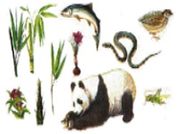 動物園裡的貓熊,還吃牛奶、雞蛋、餅乾和各種蔬菜、水果, 牠們非常愛吃這些食物。