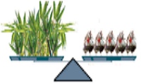 一隻貓熊每天要吃15∼20公斤左右的竹,大約等於五隻肥雞的重量,和一個10歲的小朋友五天的食物差不多。
